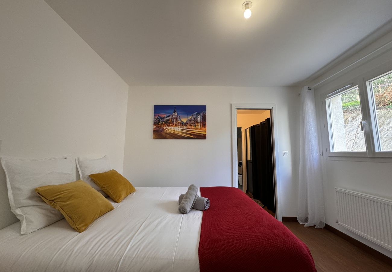 As soon as you enter, you will be welcomed by a spacious living area, bathed in natural light thanks to the large bay windows that reveal a breathtaking view of the valley. The living room offers a warm and open space, conducive to moments of sharing or tranquility.