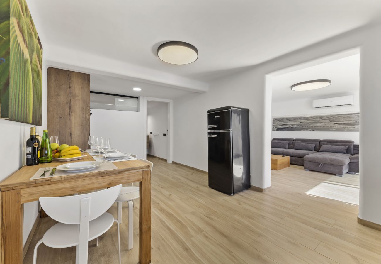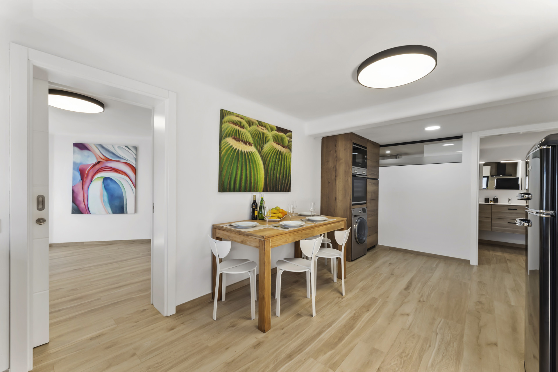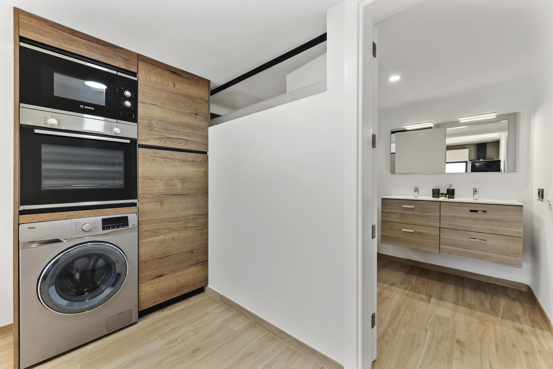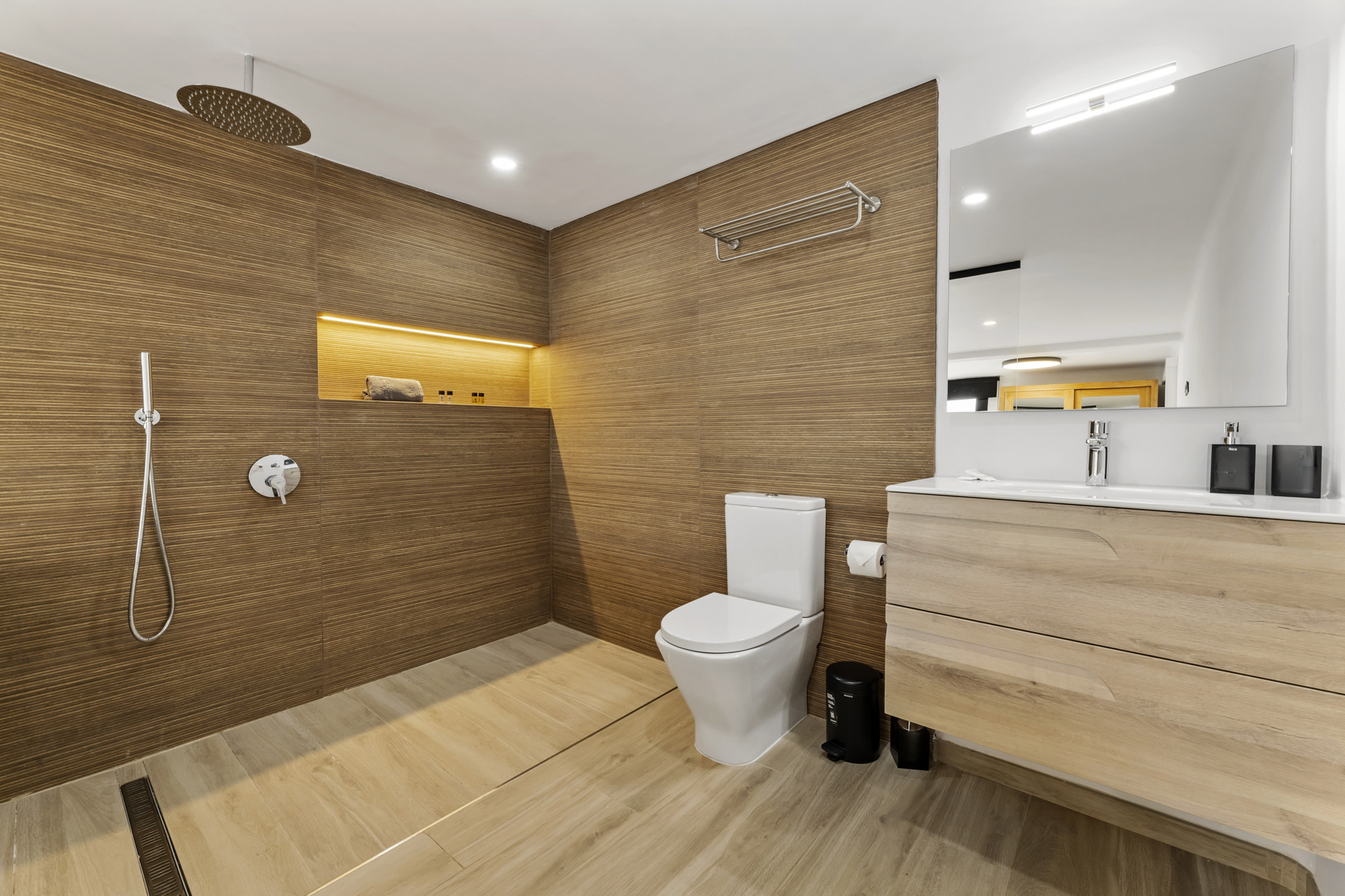 The ground floor, completely renovated with an elegant design that integrates old traditional elements with modern ones, fully equipped independent kitchen, two bathrooms (one of them en-suite) and two spacious bedrooms. One of the bedrooms has direct access to the pool.