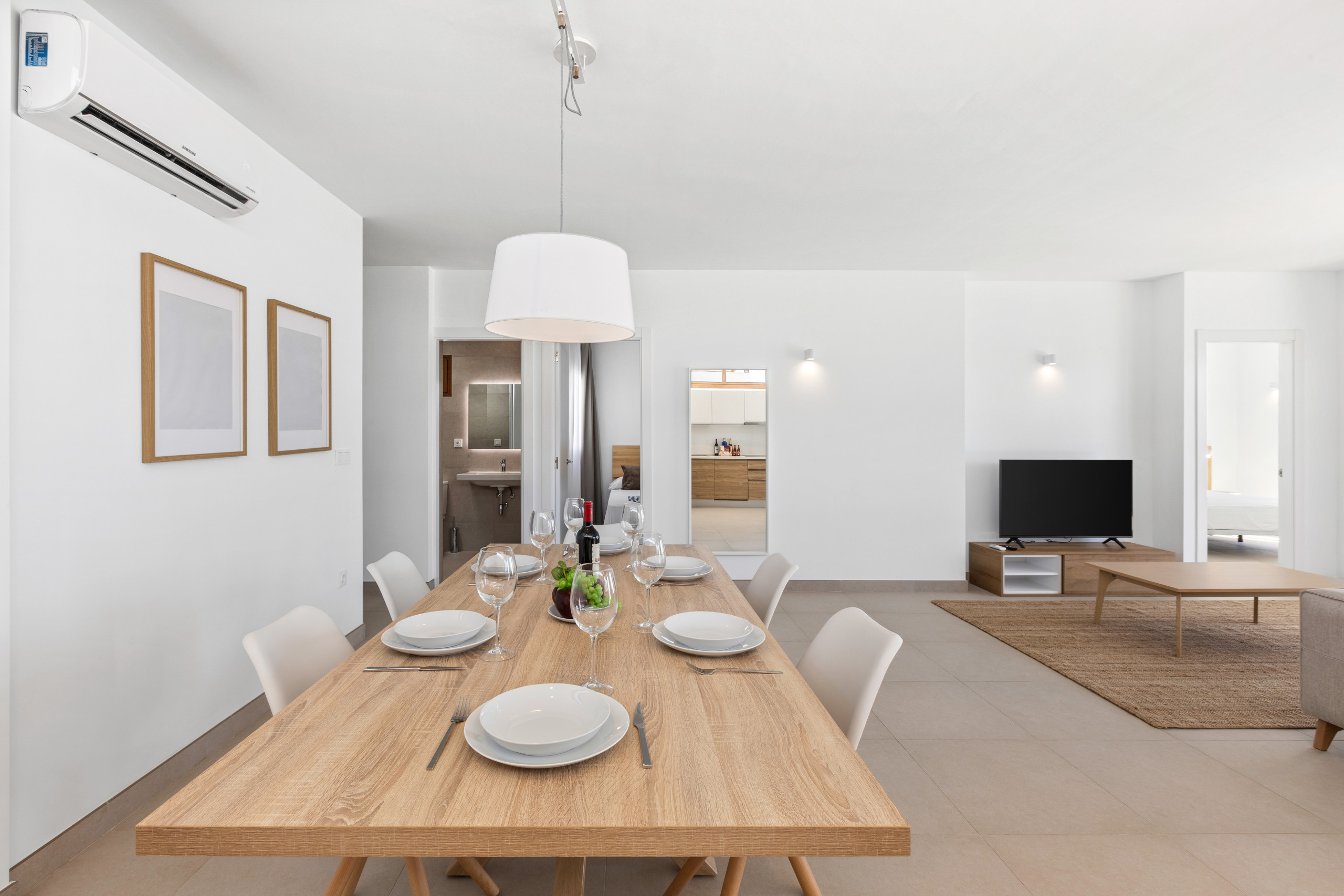 As for the common areas, the open-plan kitchen is fully equipped with appliances such as fridge, freezer, washing machine, dishwasher, oven, microwave, coffee maker and toaster, among others. You can easily prepare your meals and enjoy them in the dining room or on the terrace.