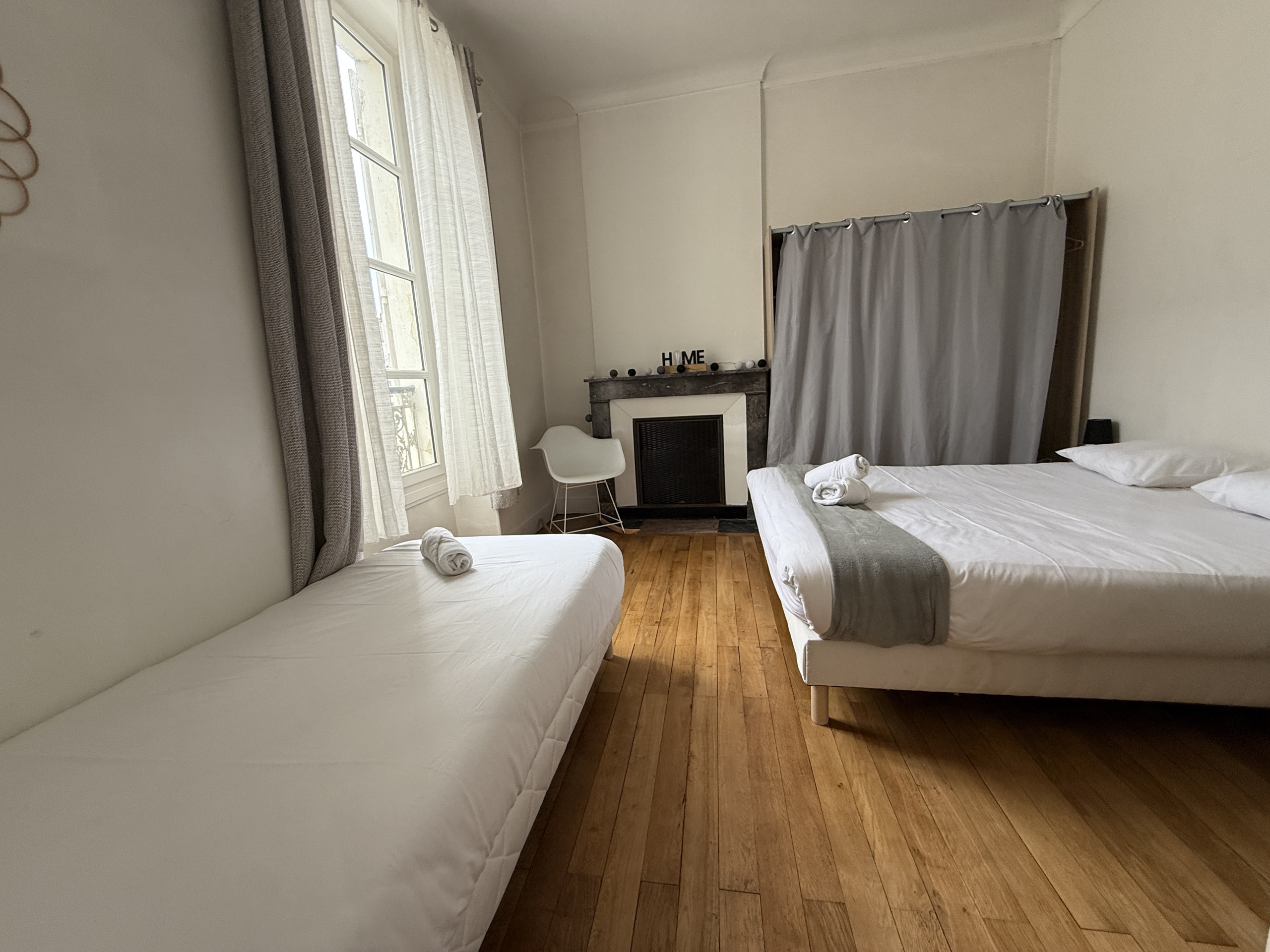 Chambre 1 : 1 lit double + 1 lit simple (90 cm)